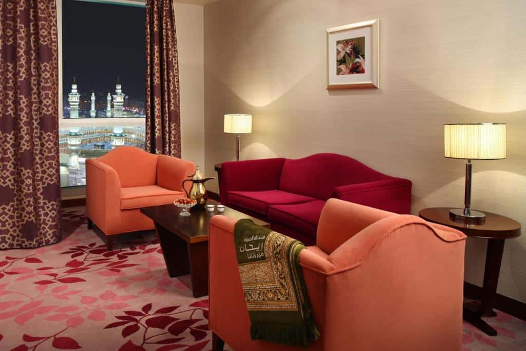 • التصميم الراقي: يتميز الفندق بتصميم يدمج بين الحداثة المعمارية والزخارف الإسلامية الرفيعة، مما يخلق أجواءً تجمع بين الفخامة العالمية والروحانية المقدسة.