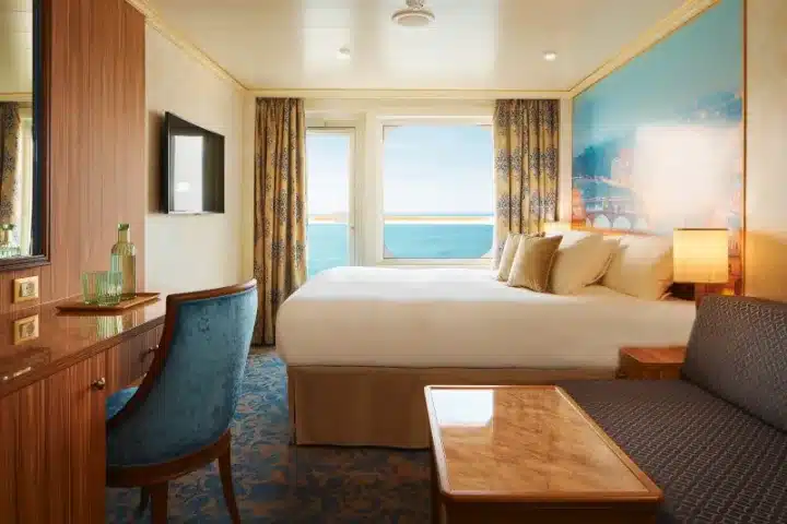 الكبائن بشرفة خاصة (البلكونة): الخيار المفضل للسعوديين، حيث الخصوصية والاستمتاع بقهوة الصباح أمام سواحل إيطاليا وفرنسا.